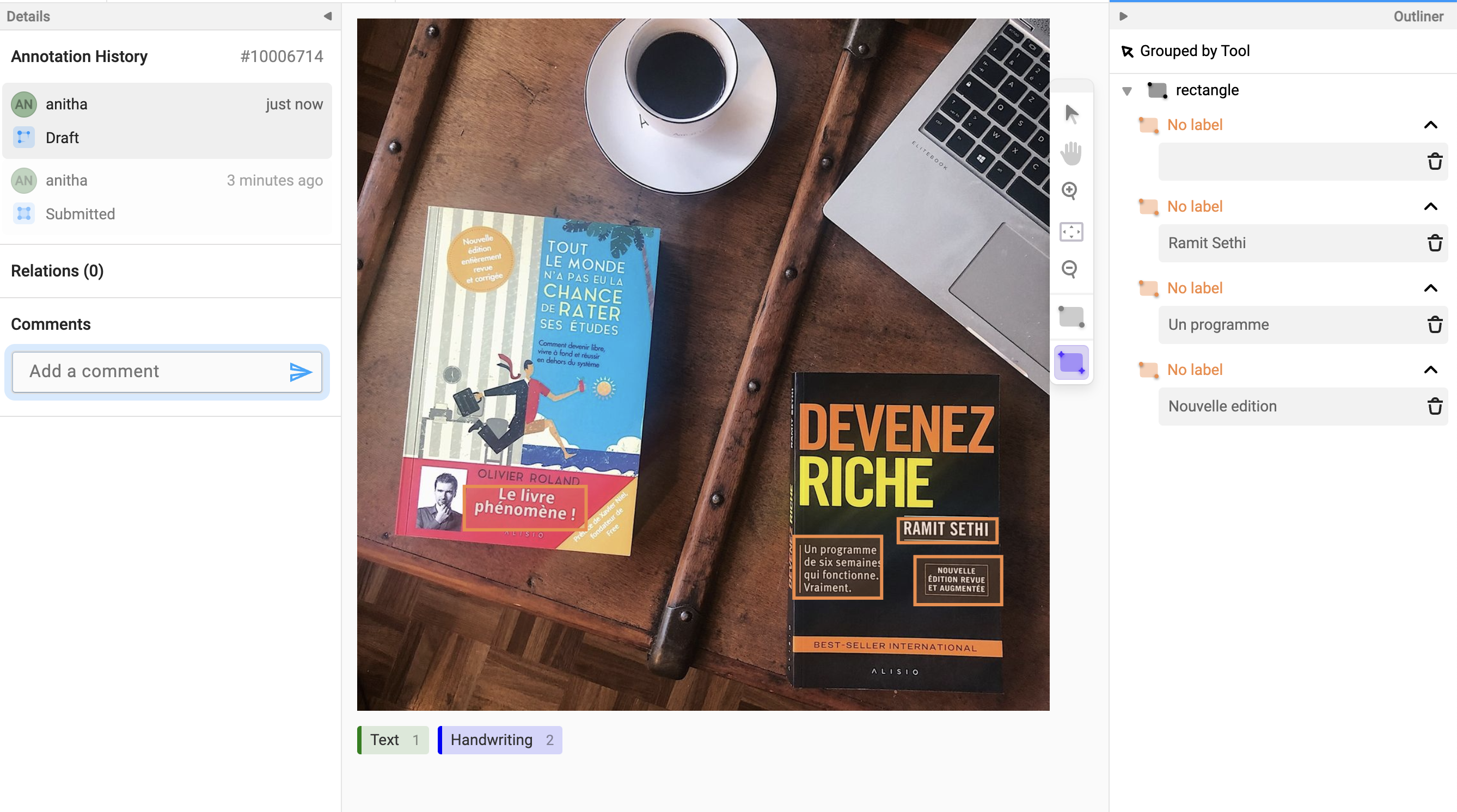 Use Outliner to work with larger annotation tasks (many bounding boxes in one image, larger videos, and so on).