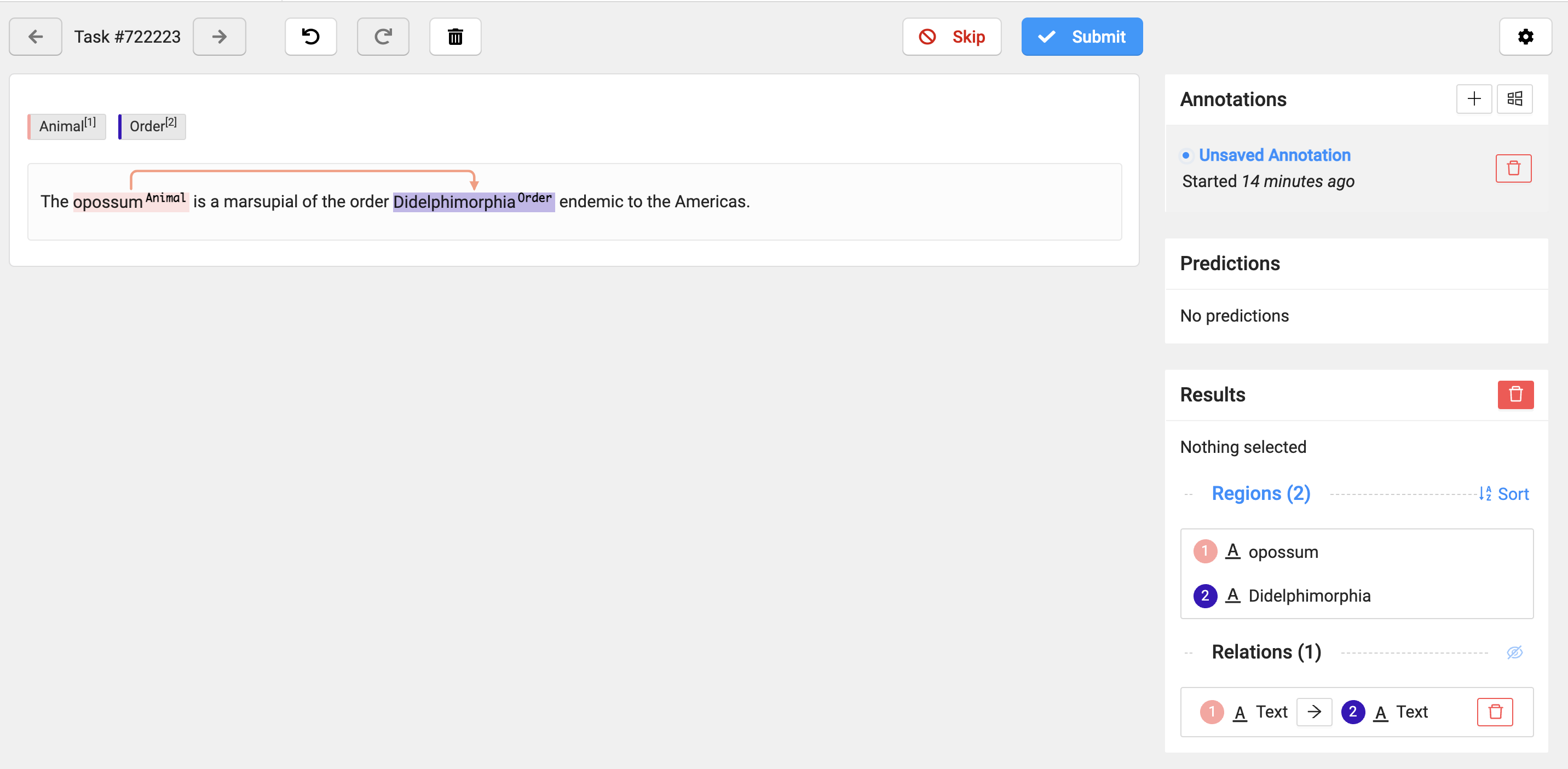 3. Click Submit to submit the completed annotation and move on to the next task.